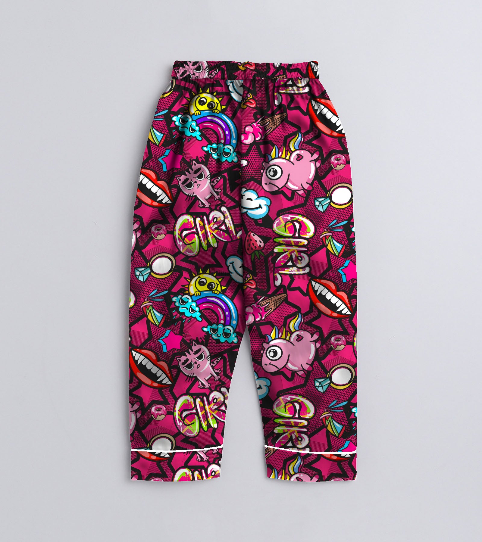 PRINT & DESIGN: This design exudes playful charm. The full sleeve shirt and full-length printed Pyjama ensure ultimate comfort, while the button-up front and soft elastic bottom with contrast cording add a touch of elegance. Perfect for cozy nights and sweet dreams!