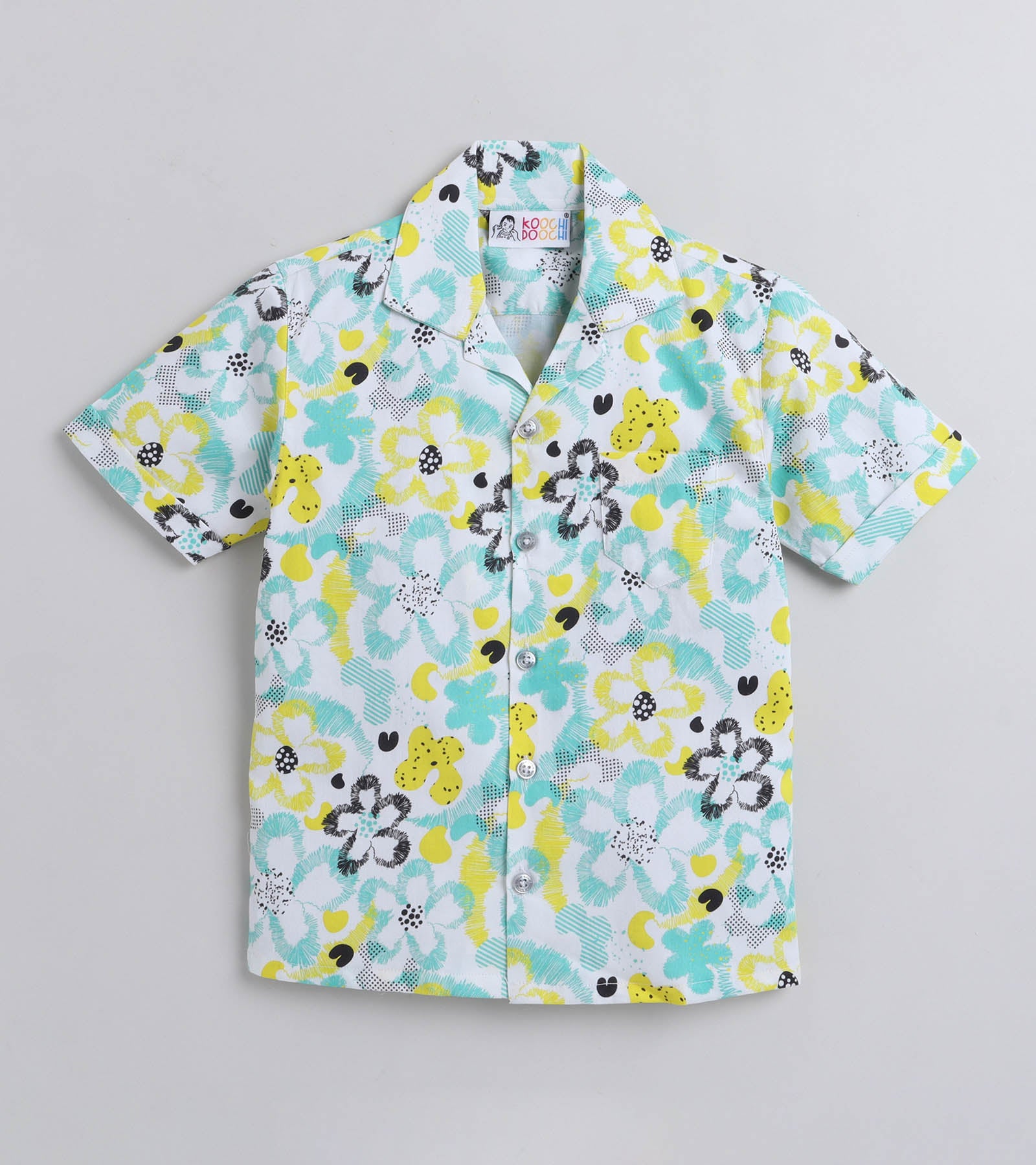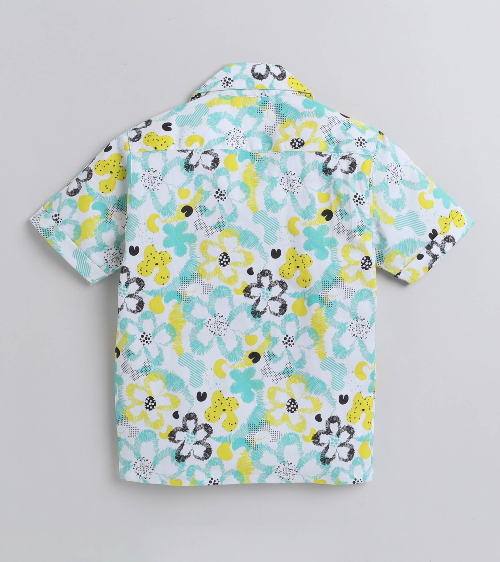 Reverse Flower Digital printed Shirt with White solid Shorts