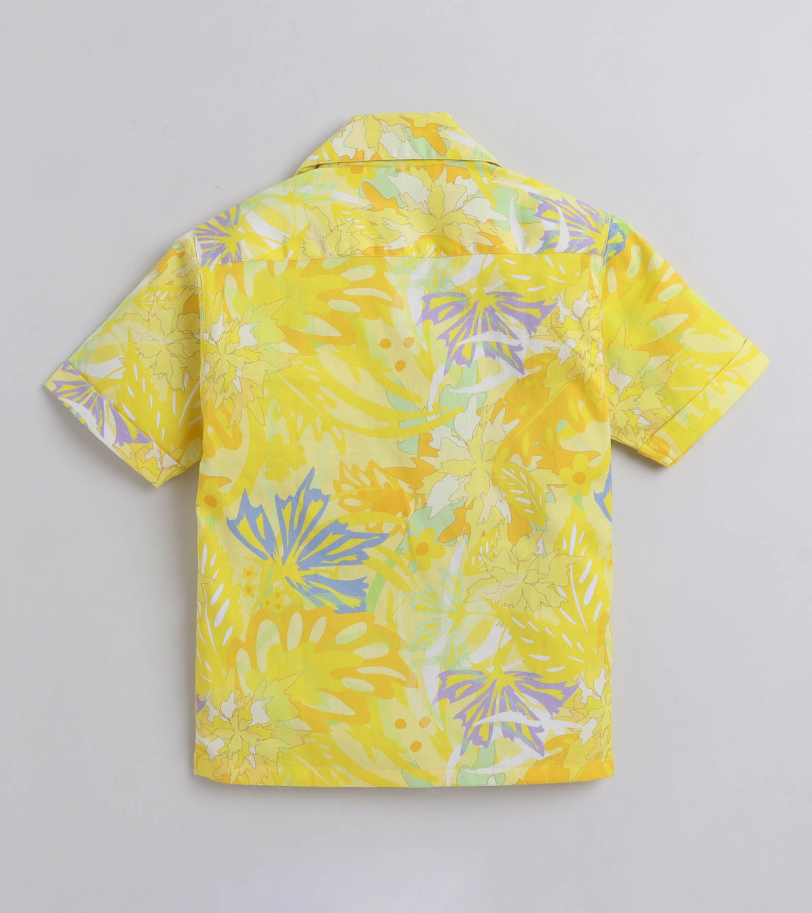 Yellow Leaf Digital printed Shirt with White solid Shorts
